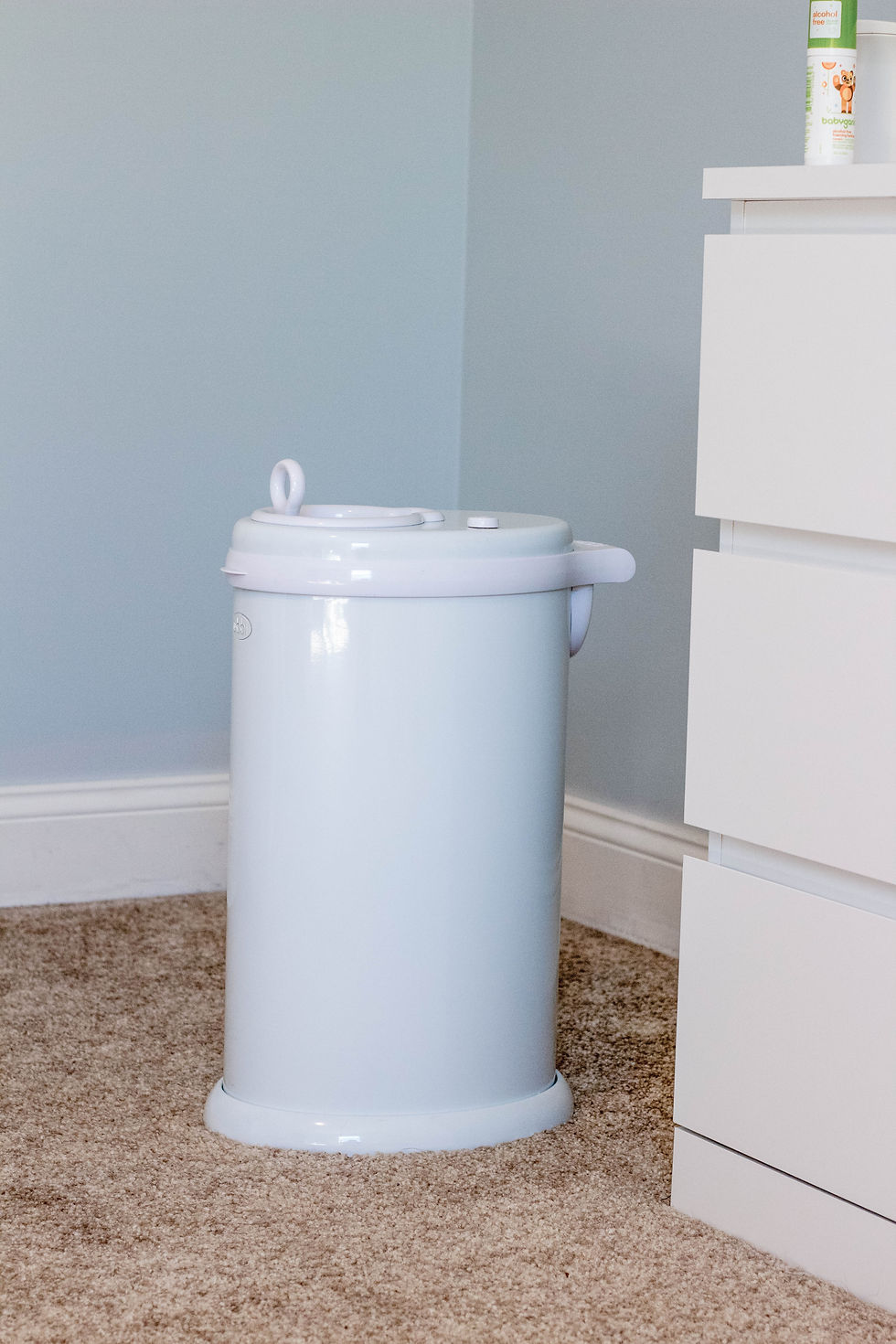 Onto another brand, Ubi. I registered for their diaper pail and wipe dispenser. So very glad I did because I love them both! This diaper pail stands out because unlike many other diaper pails, it is made of steel which hides the smell! A bonus is that you can use any bag with it. The wipe dispenser is great for keeping your wipes from drying out and has a small window that shows if you are soon to empty. Plus it looks nice on your changing table!