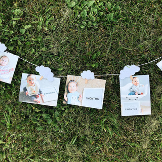 For this photo banner I just printed photos from Walgreens and hot glued clothes pins to the back of the clouds on the pre made felt banner. Super easy and adorable!